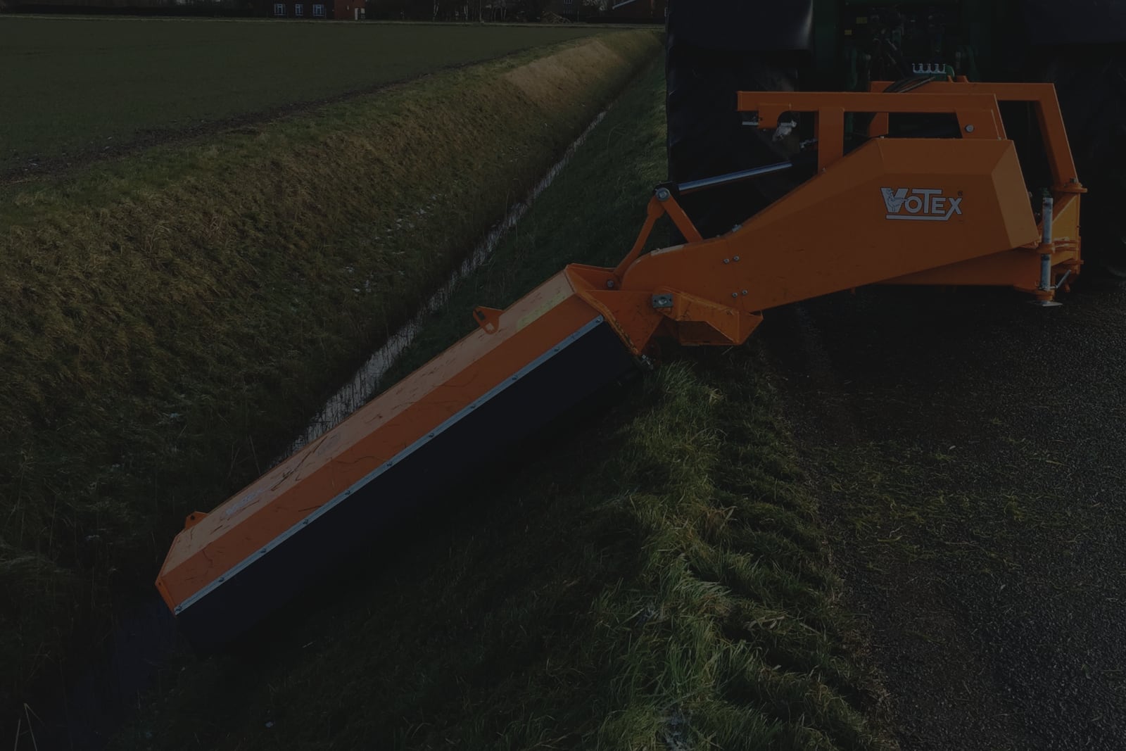 By using one single and one double spool valve, the machines operate from +90 to -50 degs, ideal for verges, banks or ditches. Also, where the work is close to steep banks, 600mm offset ensures the tractor is a safe distance from edges. A spring breakback allows the head to move on hitting an obstacle, and then return to its working position.